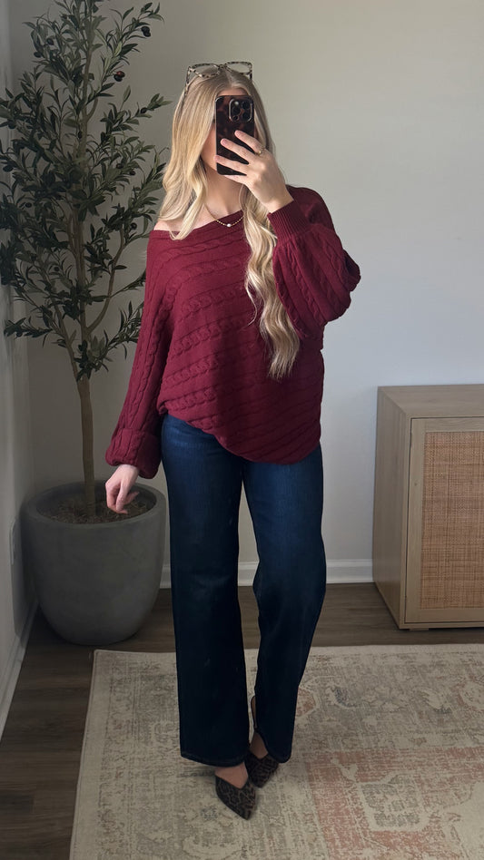 Mistletoe Cable Knit / Burgundy