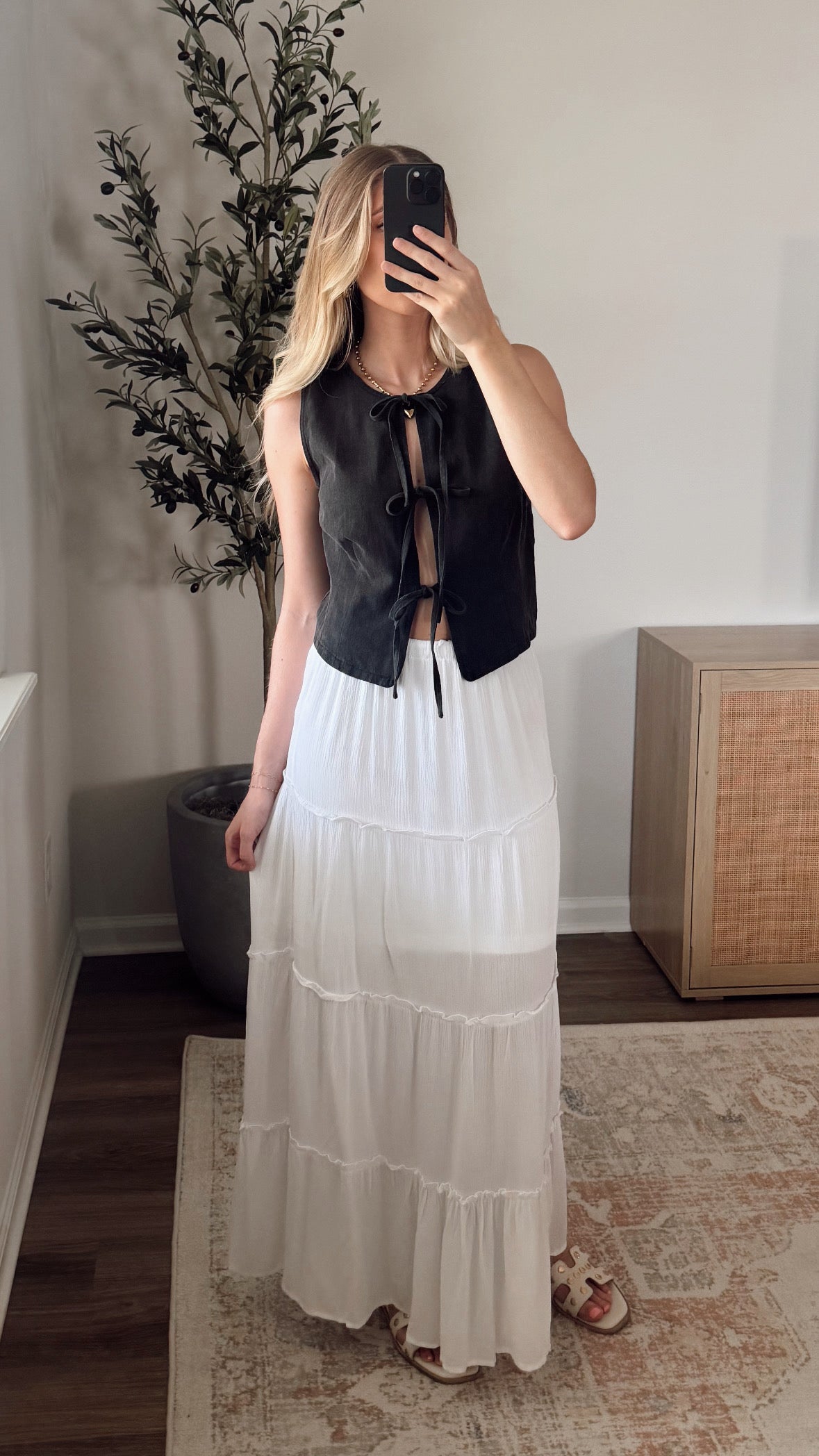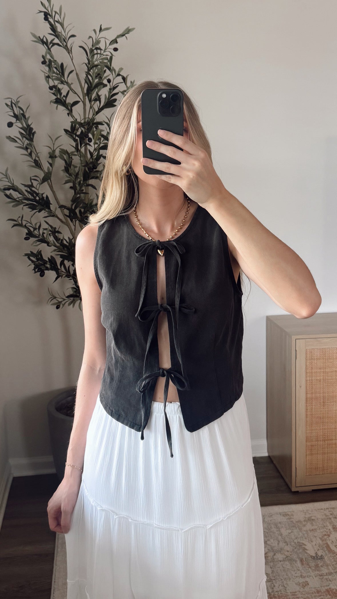 Denim Front Tie Vest / Charcoal