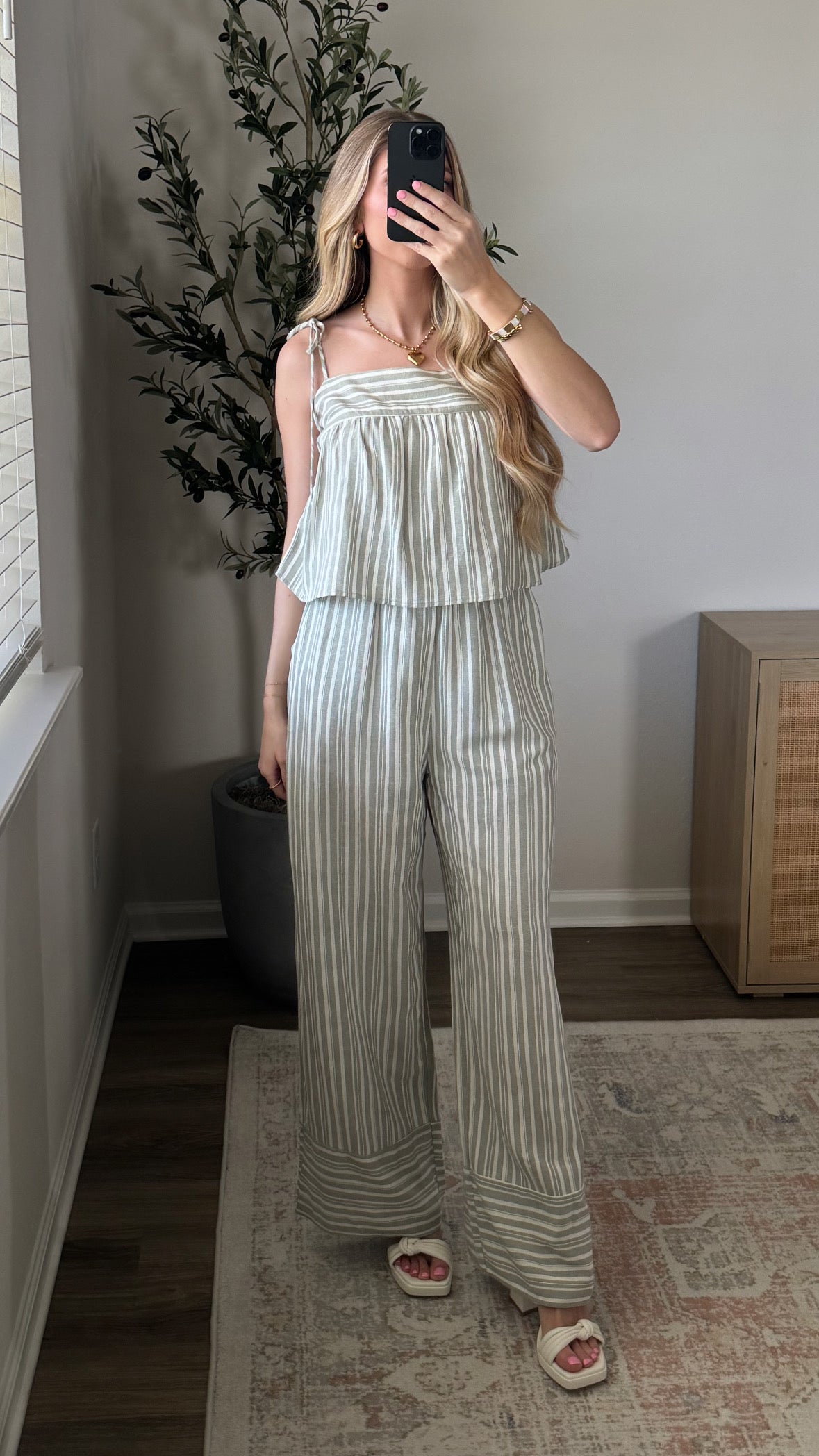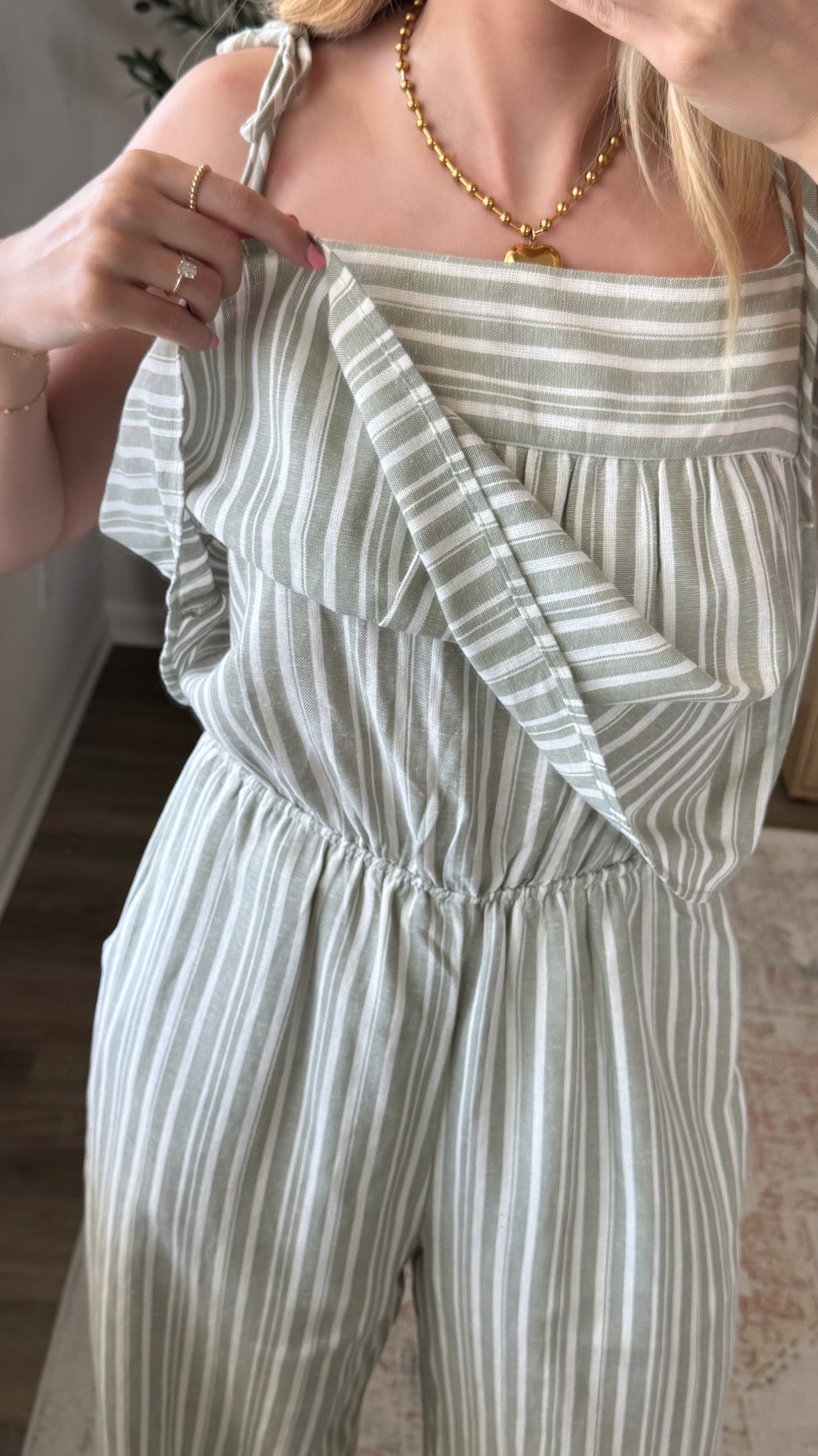Jenni Striped Jumpsuit / Sage